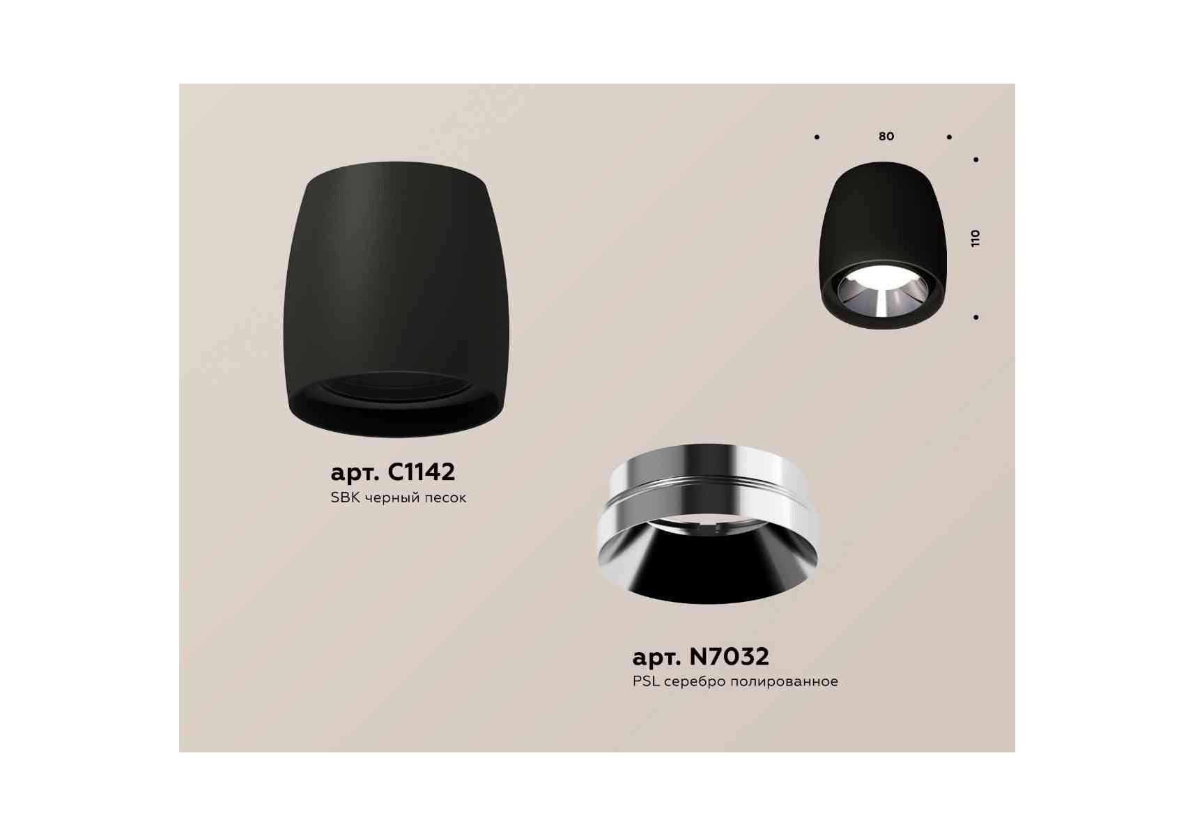 Комплект накладного светильника Ambrella light Techno Spot XS1142003 SBK/PSL черный песок/серебро полированное (C1142, N7032)