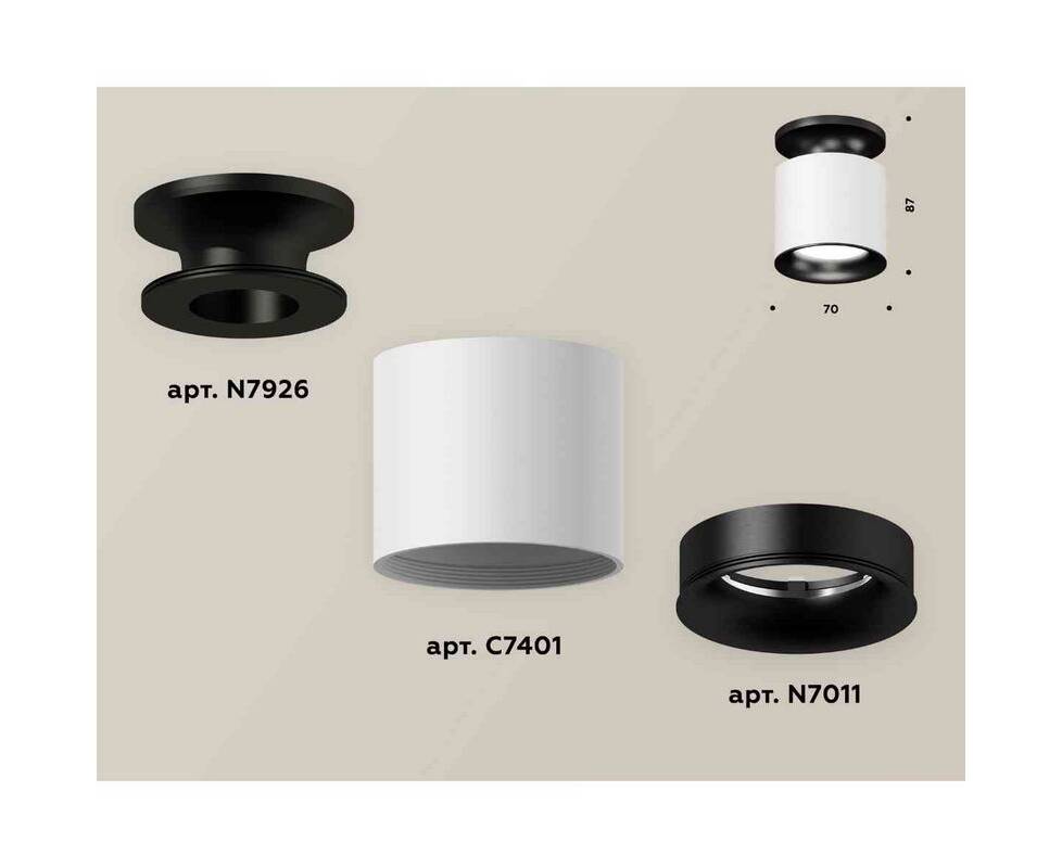 Комплект накладного светильника Ambrella light Techno Spot XS7401082 SWH/PBK белый песок/черный полированный (N7926, C7401, N7011)
