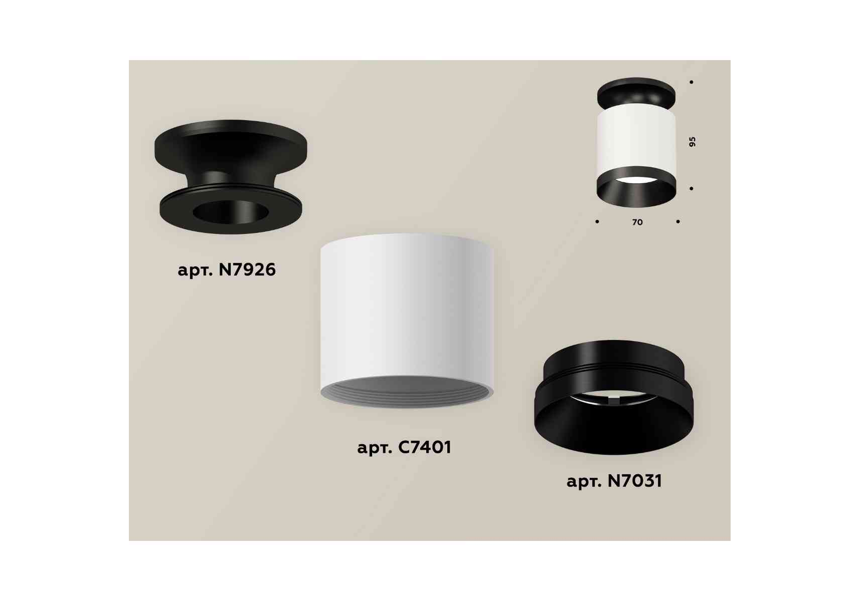 Комплект накладного светильника Ambrella light Techno Spot XS7401083 SWH/PBK белый песок/черный полированный (N7926, C7401, N7031)