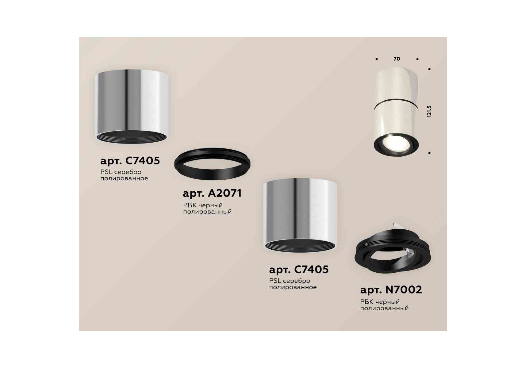 Комплект накладного светильника Ambrella light Techno Spot XS7405040 PSL/PBK серебро полированное/черный полированный (C7405, A2071, C7405, N7002)