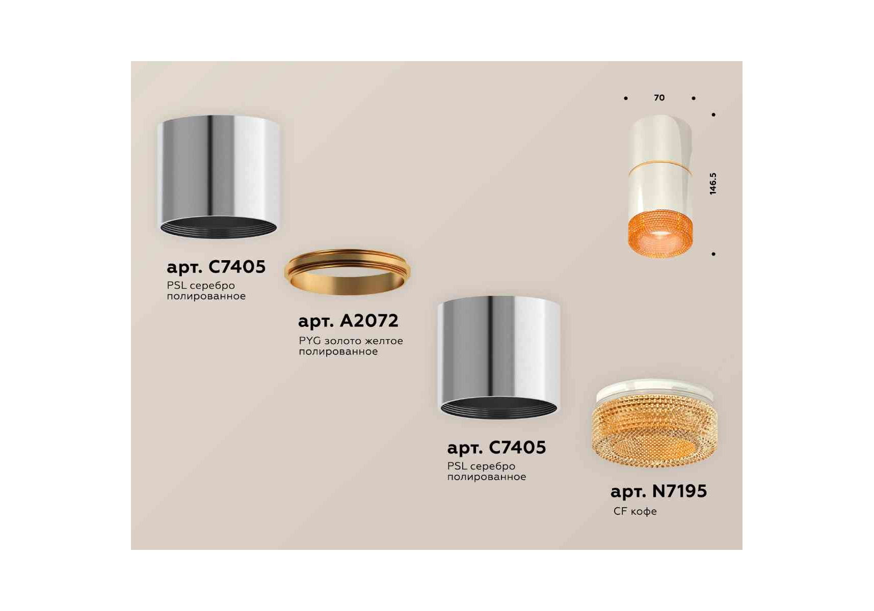 Комплект накладного светильника Ambrella light Techno Spot XS7405062 PSL/CF серебро полированное/кофе (C7405, A2072, C7405, N7195)