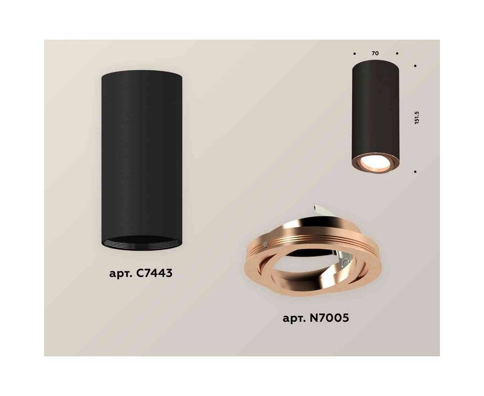 Комплект накладного светильника Ambrella light Techno Spot XS7443005 SBK/PPG черный песок/золото розовое полированное (C7443, N7005)