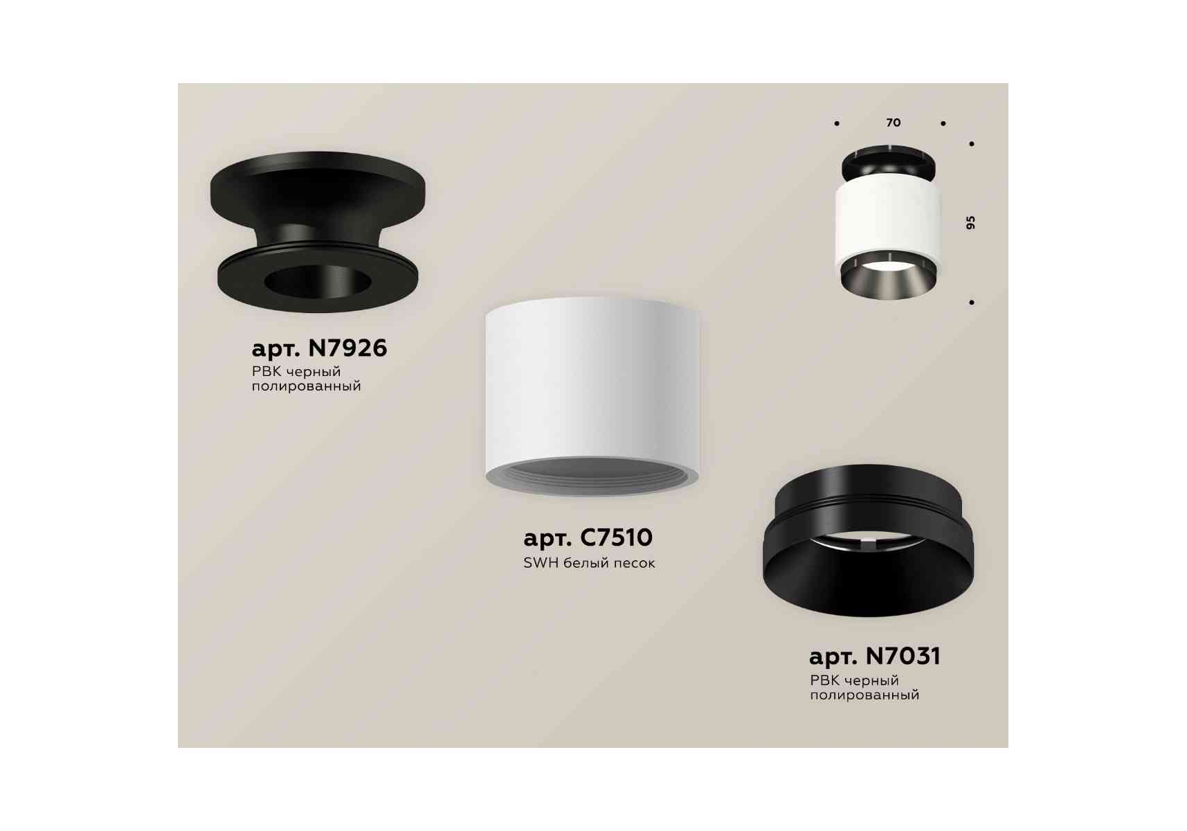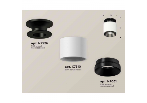 Комплект накладного светильника Ambrella light Techno Spot XS7510060 SWH/PBK белый песок/черный полированный (N7926, C7510, N7031)