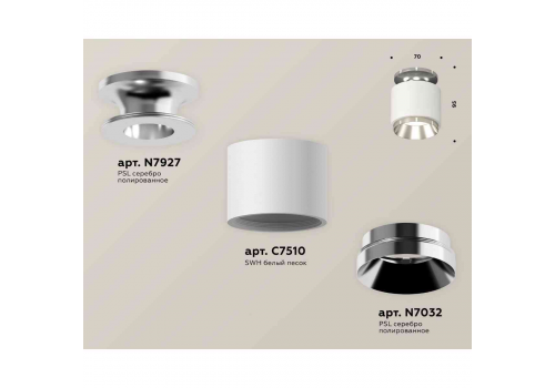 Комплект накладного светильника Ambrella light Techno Spot XS7510080 SWH/PSL белый песок/серебро полированное (N7927, C7510, N7032)