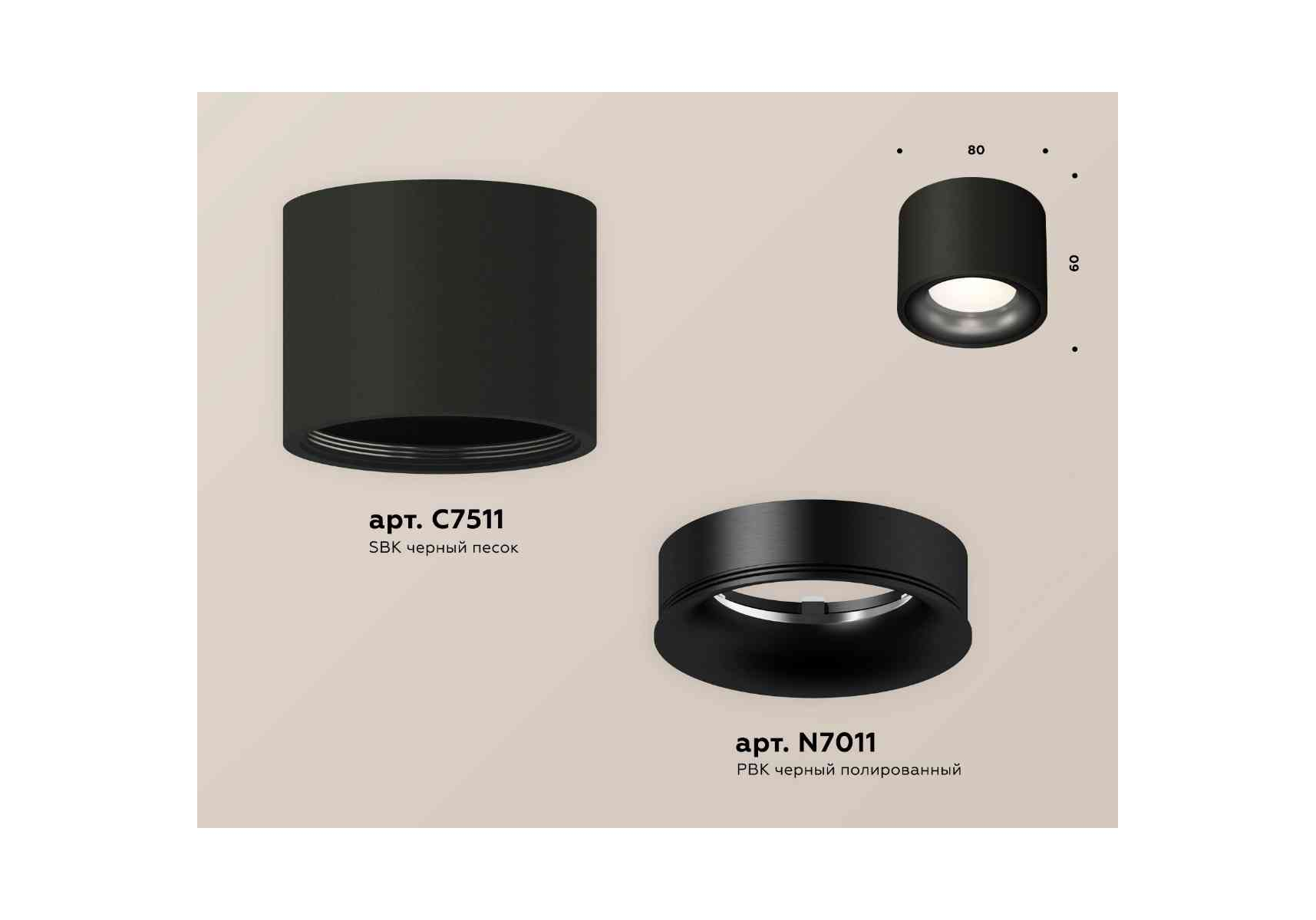 Комплект накладного светильника Ambrella light Techno Spot XS7511021 SBK/PBK черный песок/черный полированный (C7511, N7011)