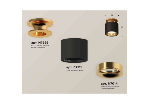 Комплект накладного светильника Ambrella light Techno Spot XS7511121 SBK/PYG черный песок/золото желтое полированное (N7929, C7511, N7014)