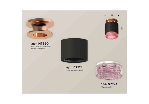 Комплект накладного светильника Ambrella light Techno Spot XS7511142 SBK/PPG/PI черный песок/золото розовое полированное/розовый (N7930,C7511,N7193)