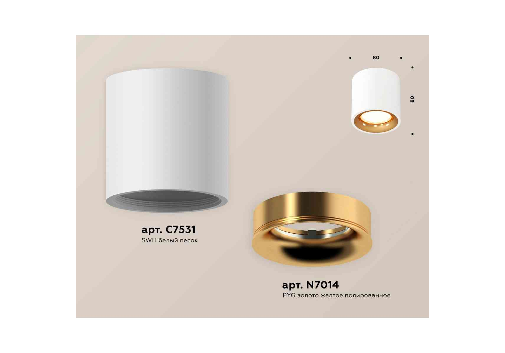 Комплект накладного светильника Ambrella light Techno Spot XS7531024 SWH/PYG белый песок/золото желтое полированное (C7531, N7014)
