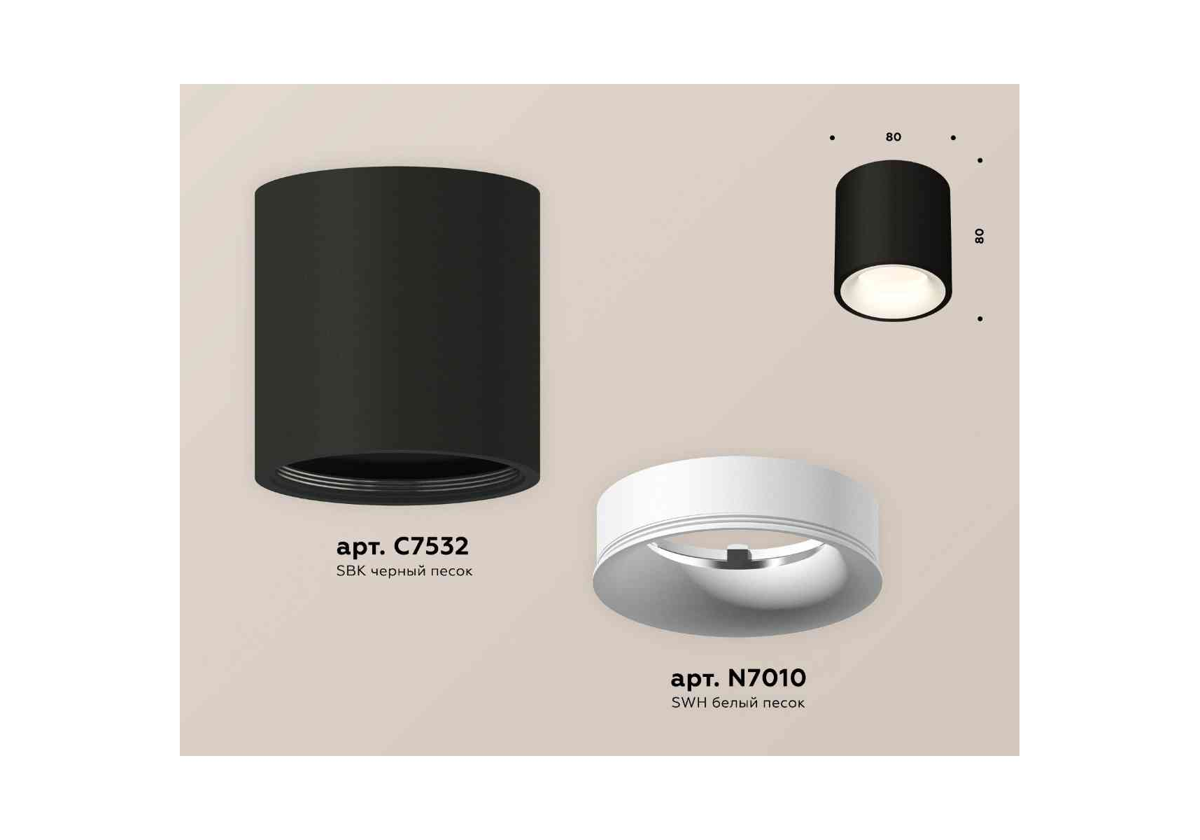 Комплект накладного светильника Ambrella light Techno Spot XS7532020 SBK/SWH черный песок/белый песок (C7532, N7010)