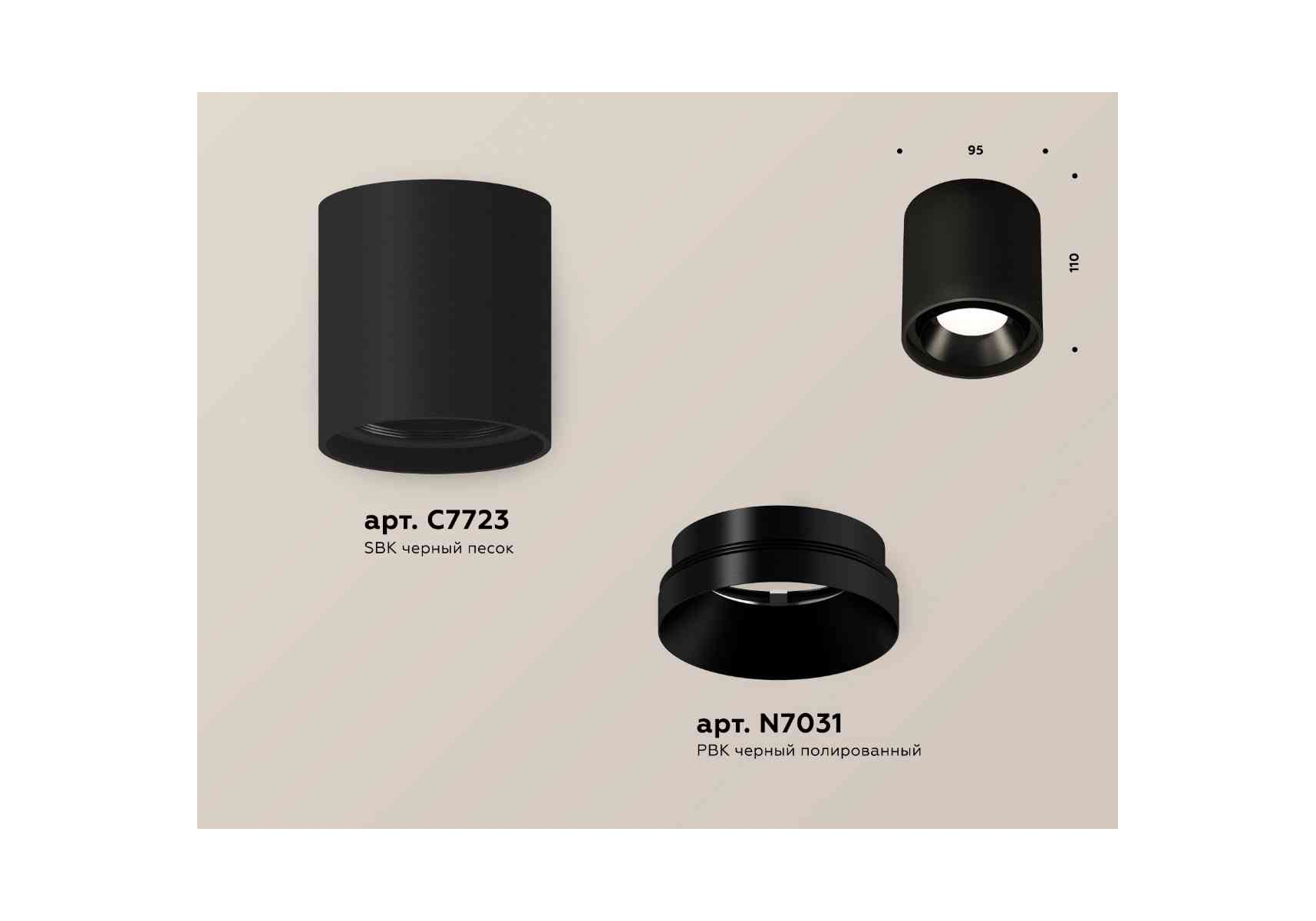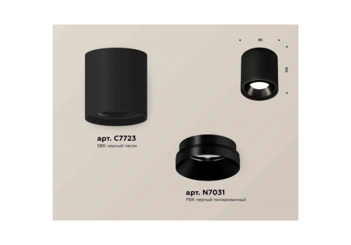 Комплект накладного светильника Ambrella light Techno Spot XS7723002 SBK/PBK черный песок/черный полированный (C7723, N7031)