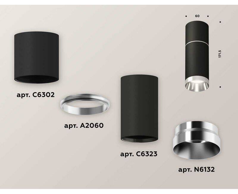 Комплект потолочного светильника Ambrella light Techno Spot XC (C6302, A2060, C6323, N6132) XS6323060