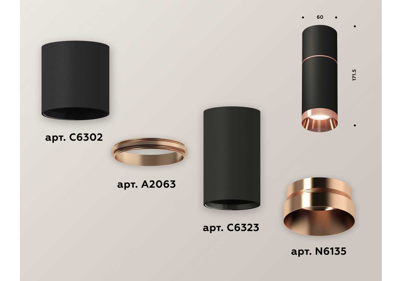Комплект потолочного светильника Ambrella light Techno Spot XC (C6302, A2063, C6323, N6135) XS6323063