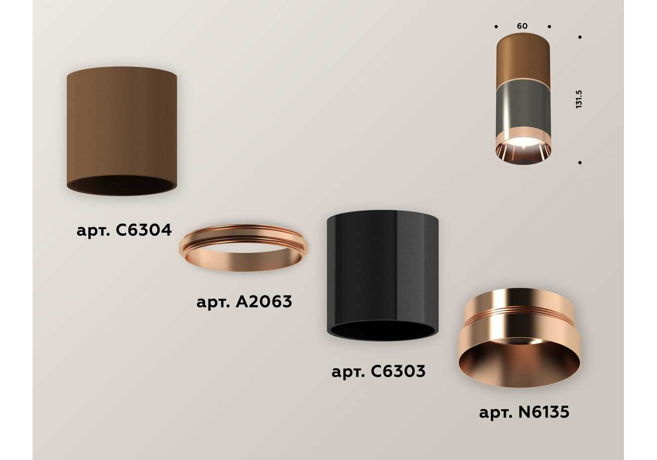 Комплект потолочного светильника Ambrella light Techno Spot XC (C6304, A2063, C6303, N6135) XS6303021
