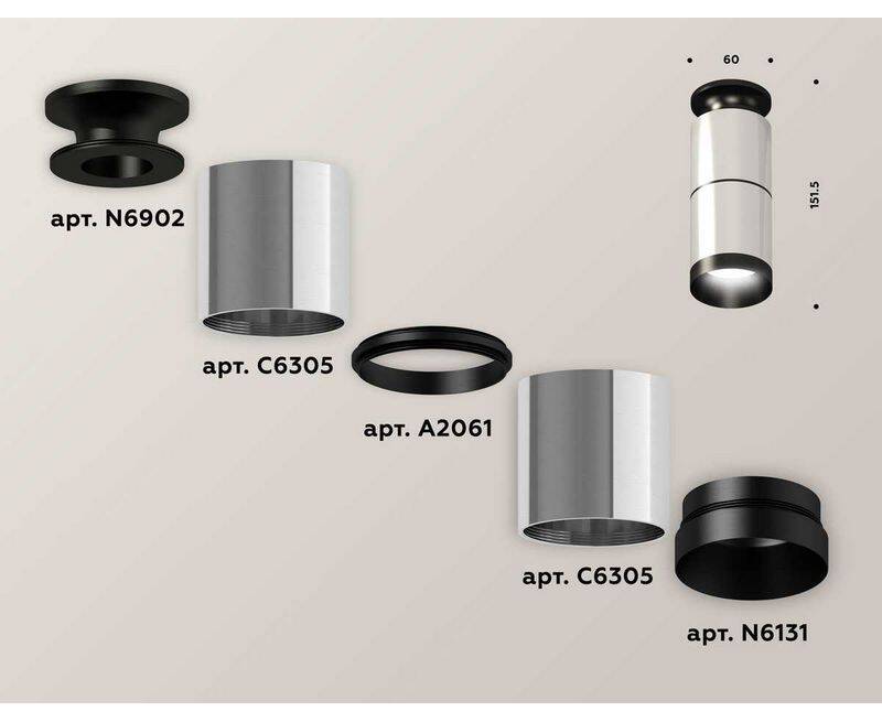 Комплект потолочного светильника Ambrella light Techno Spot XC (N6902, C6305, A2061, N6131) XS6305080