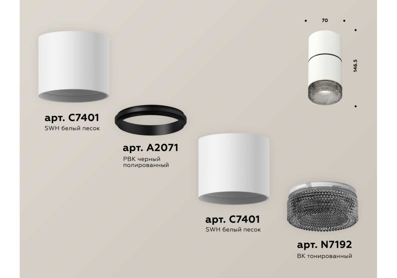 Комплект потолочного светильника Ambrella light Techno Spot XS (C7401, A2071, C7401, N7192) XS7401182