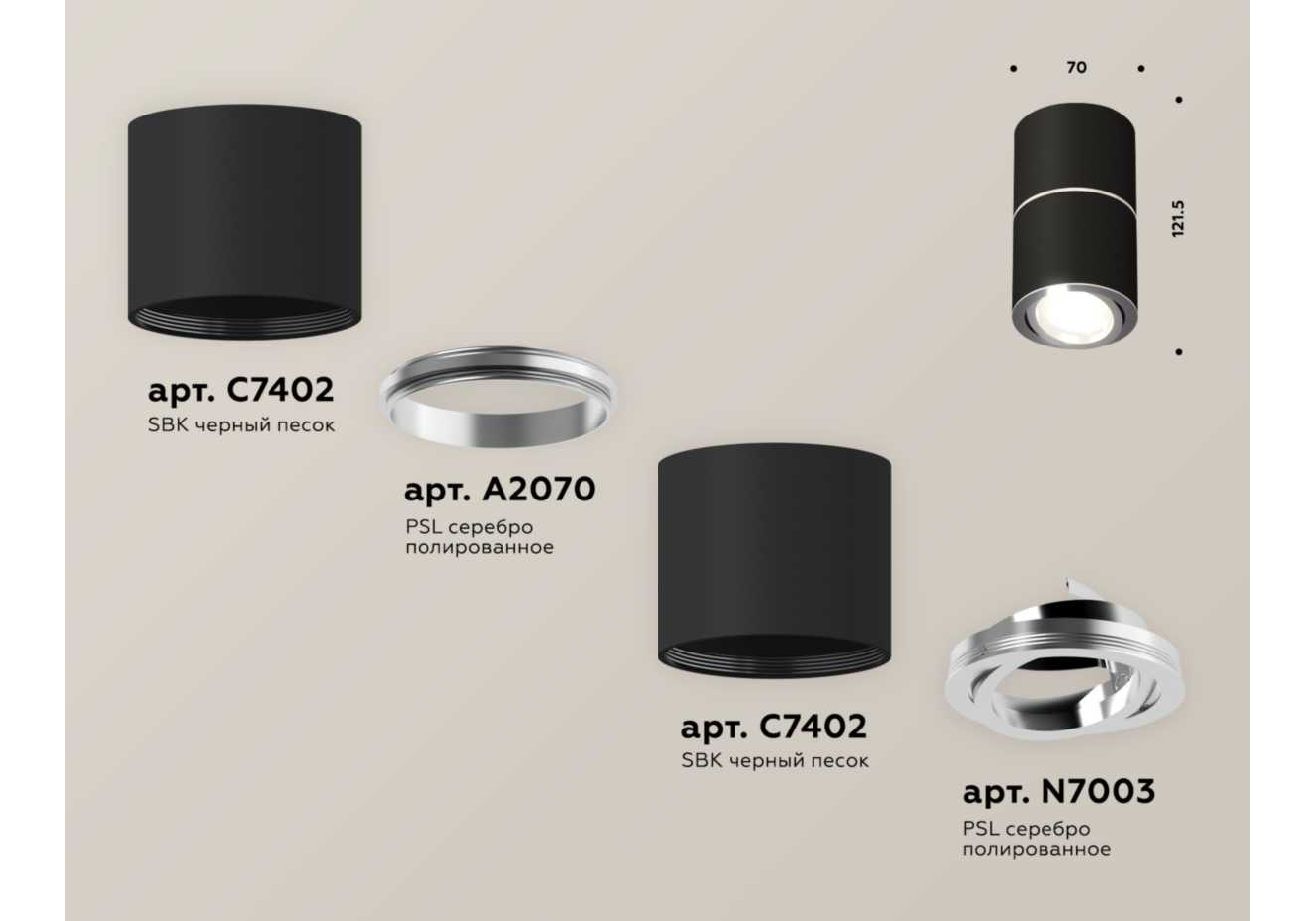 Комплект потолочного светильника Ambrella light Techno Spot XS (C7402, A2070, C7402, N7003) XS7402140