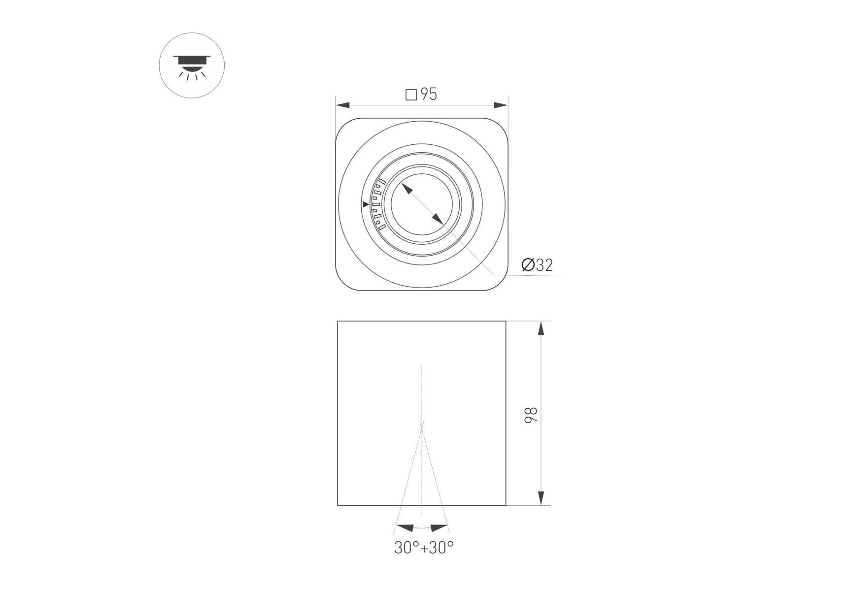 Накладной светильник Arlight SP-ACENTO-S95x95-10W Warm3000 (BK, 20-45 deg, 230V) 055747