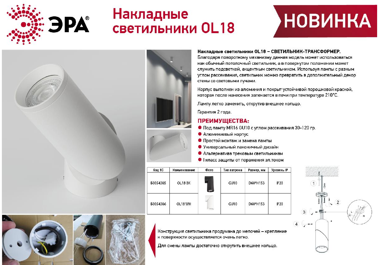 Накладной светильник Эра OL18 BK Б0054385