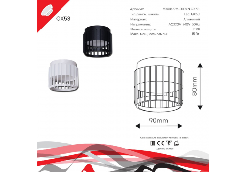 Накладной светильник Reluce 53018-9.5-001MN GX53 BK