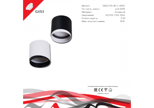 Накладной светильник Reluce 53022-9.5-001IL GX53 WT