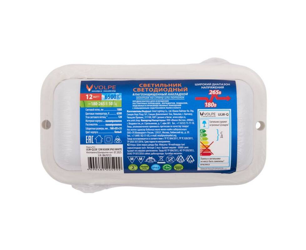 Накладной светильник влагозащищенный Volpe ULW-Q228 12W/6500K IP65 WHITE UL-00013187