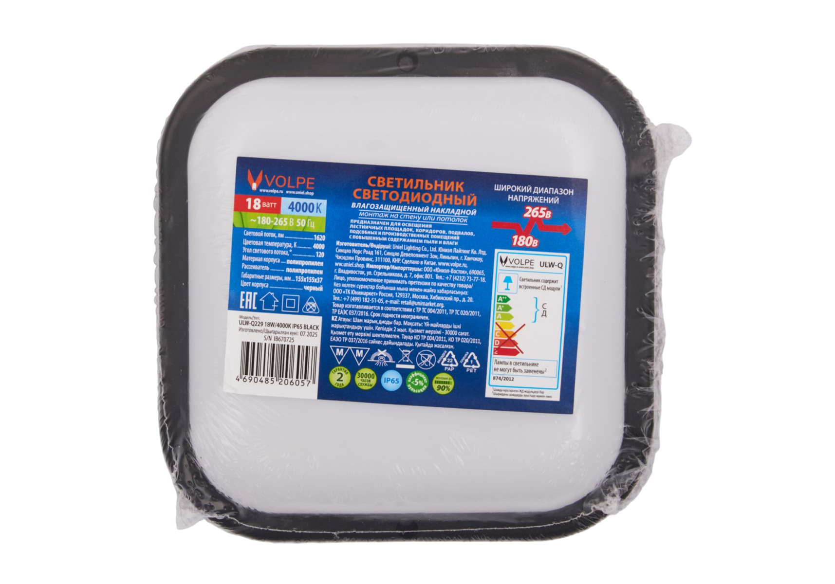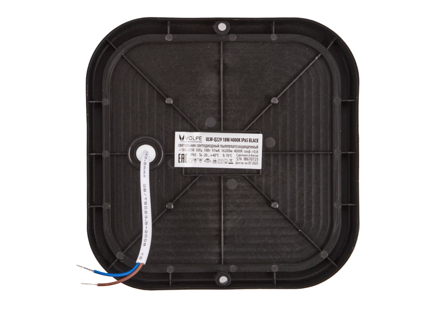 Накладной светильник влагозащищенный Volpe ULW-Q229 18W/4000K IP65 BLACK UL-00013194