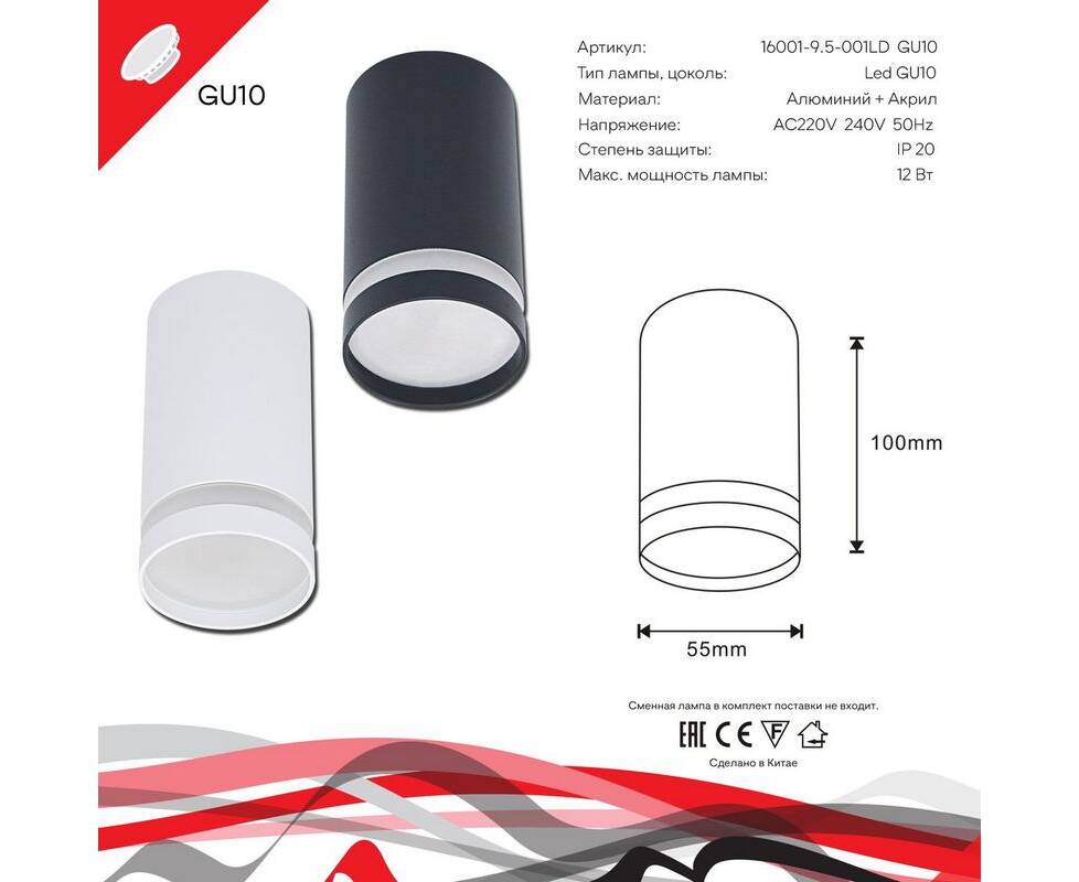 16001-9.5-001LD GU10 BK