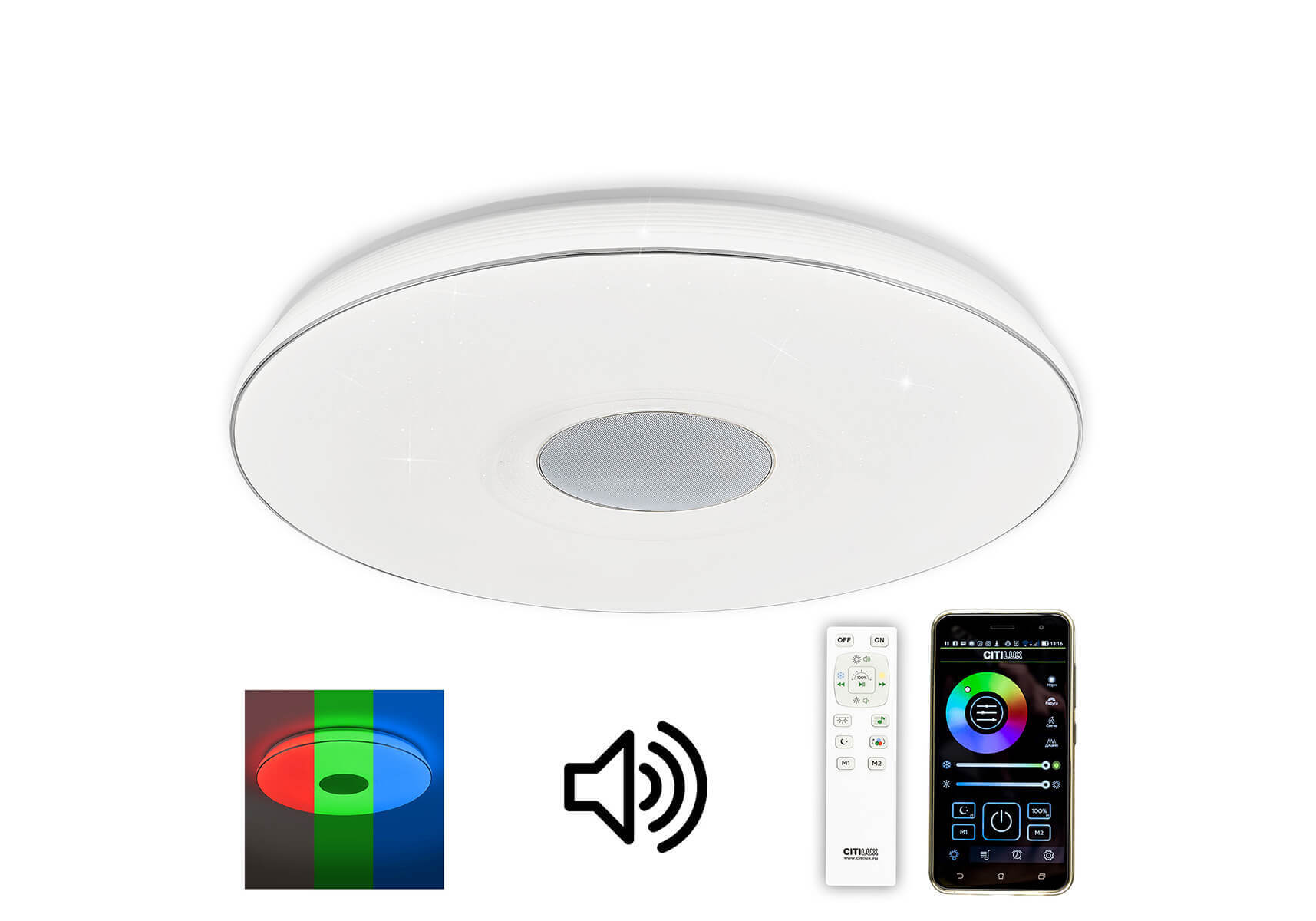 Потолочный светильник CL703M100 Light & Music от известного бренда из Дании Citilux обладает потрясающим внешним видом и великолепно подойдет для спальни в современном стиле. Каркас из металла с хромированным покрытием, продуманная конструкция и белого цвета полимерный плафон придают данной модели потрясающий внешний вид. Светильник может осветить площадь до 25 м2. Источник света уже встроен в корпус и не требует приобретения дополнительных лампочек. Модель CL703M100 Light & Music можно устанавливать на натяжной потолок. Родиной бренда Citilux является ДАНИЯ. Сборочное производство компании расположено в Китае, однако, это никак не сказывается на качестве продукции. Заявленный производителем Citilux гарантийный срок составляет 2 года. Потолочный светодиодный светильник Citilux CL703M100 будет отличным выбором для покупки в интернет-магазине ГиперСвет. Мы оперативно доставим Ваш заказ по Калуге, Москве или в любой другой регион России.
