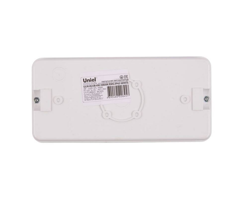 Светильник пылевлагозащищенный Uniel ULW-K25B 6W/4000K/EMG IP65 WHITE UL-00013352