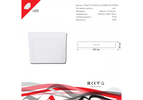 Светодиодная панель Reluce 70607-9.5-001OL LED18W WH 4000K