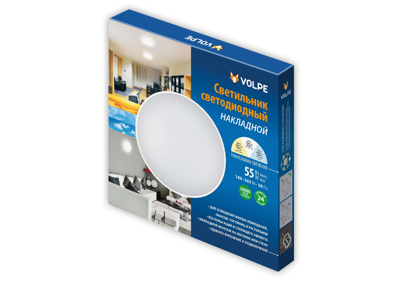 Настенно-потолочный светильник Volpe ULI-Q109 55W/3000K+4000K+6500K/R45 WHITE UL-00011442