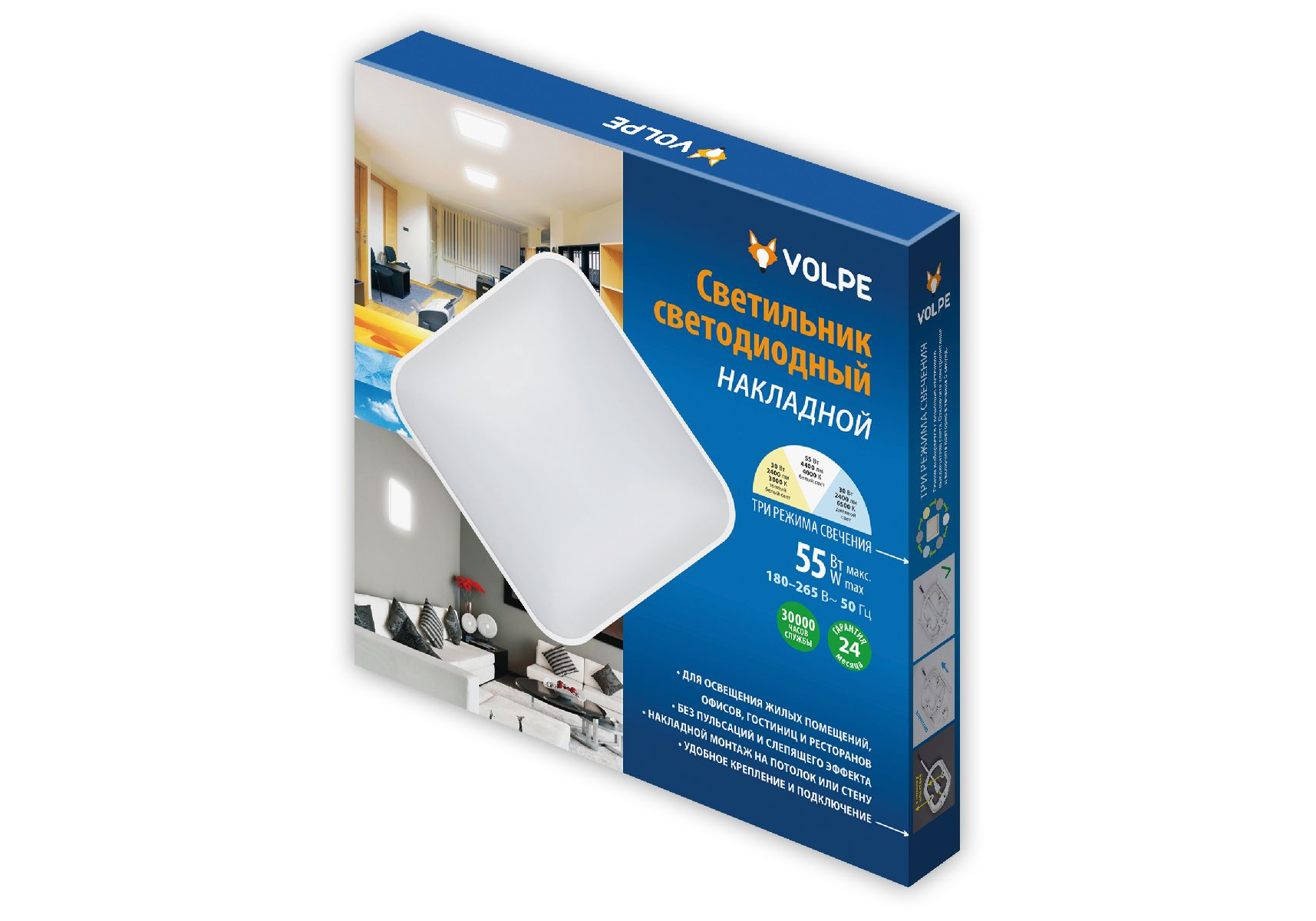 Настенно-потолочный светильник Volpe ULI-Q110 55W/3000K+4000K+6500K/S45 WHITE UL-00011443