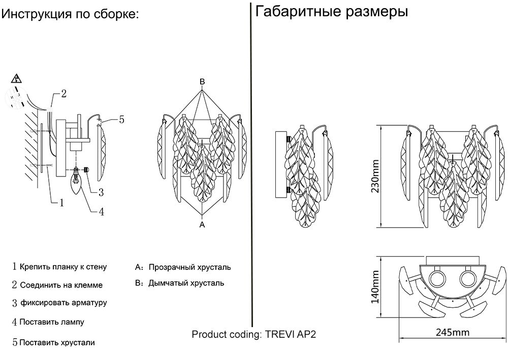 Бра Crystal Lux Trevi AP2 Brass