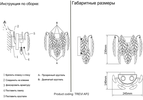 Бра Crystal Lux Trevi AP2 Chrome