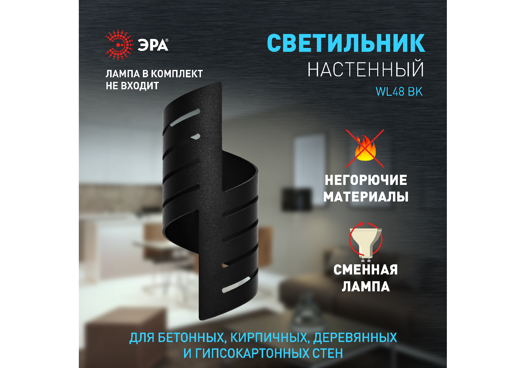 Настенный светильник Эра WL48 BK Б0059818