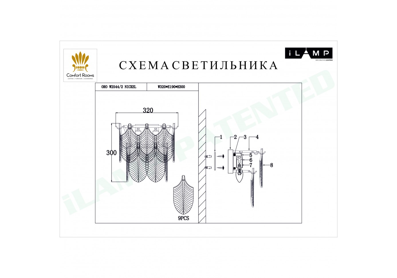Настенный светильник iLamp Oro W2544-2 Nickel