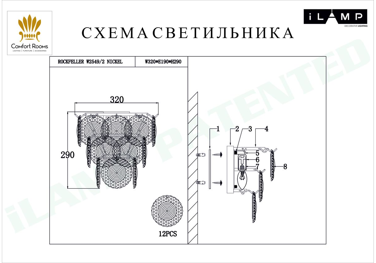 Настенный светильник iLamp Rockfeller W2549-2 NIC