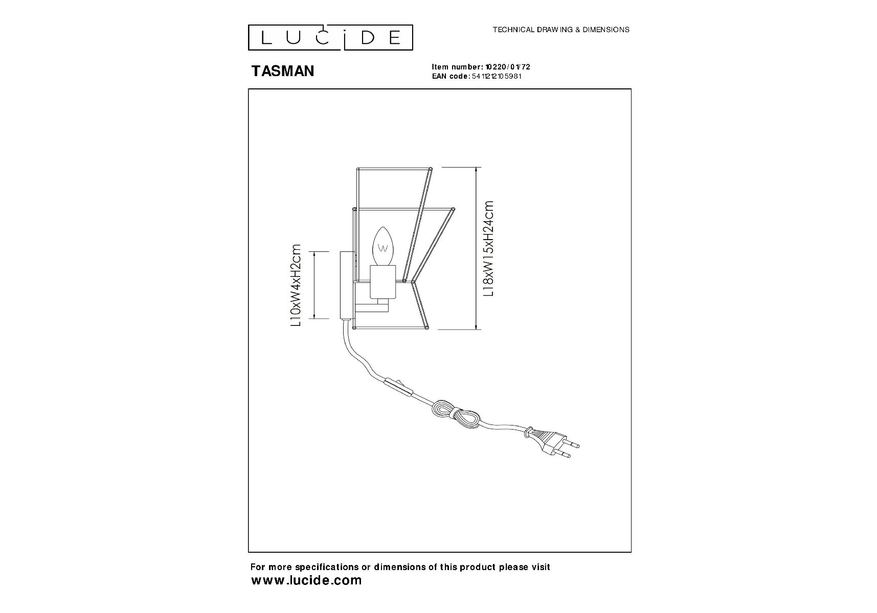 Настенный светильник Lucide Tasman 10220/01/72