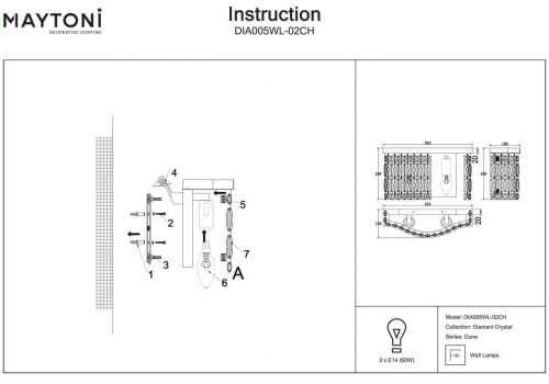 Настенный светильник Maytoni Dune DIA005WL-02CH