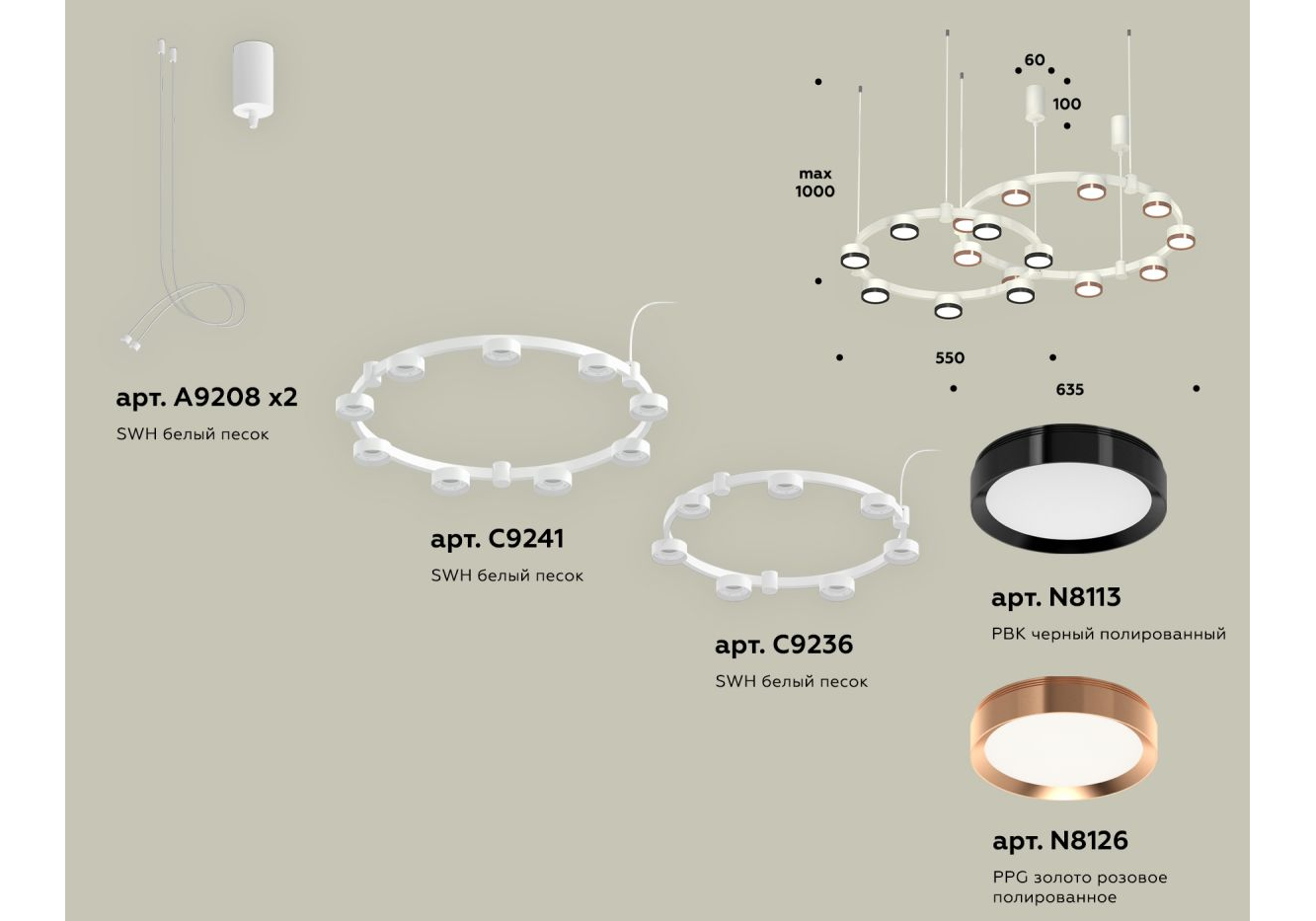 Комплект подвесного светильника Ambrella Light Techno Ring XR92081210 (A9208x2, C9241,C9236,N8113,N8