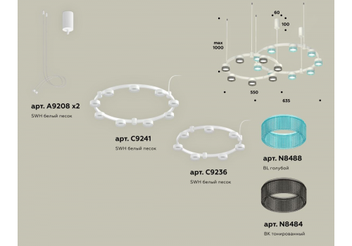 Комплект подвесного светильника Ambrella Light Techno Ring XR92081300 (A9208x2, C9241, C9236, N8488,