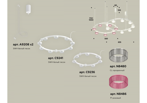 Комплект подвесного светильника Ambrella Light Techno Ring XR92081310 (A9208x2, C9241, C9236, N8480,