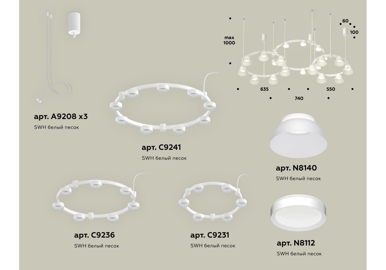 Комплект подвесного светильника Ambrella Light Techno Ring XR92082010 (A9208x3, C9241, C9236, C9231,