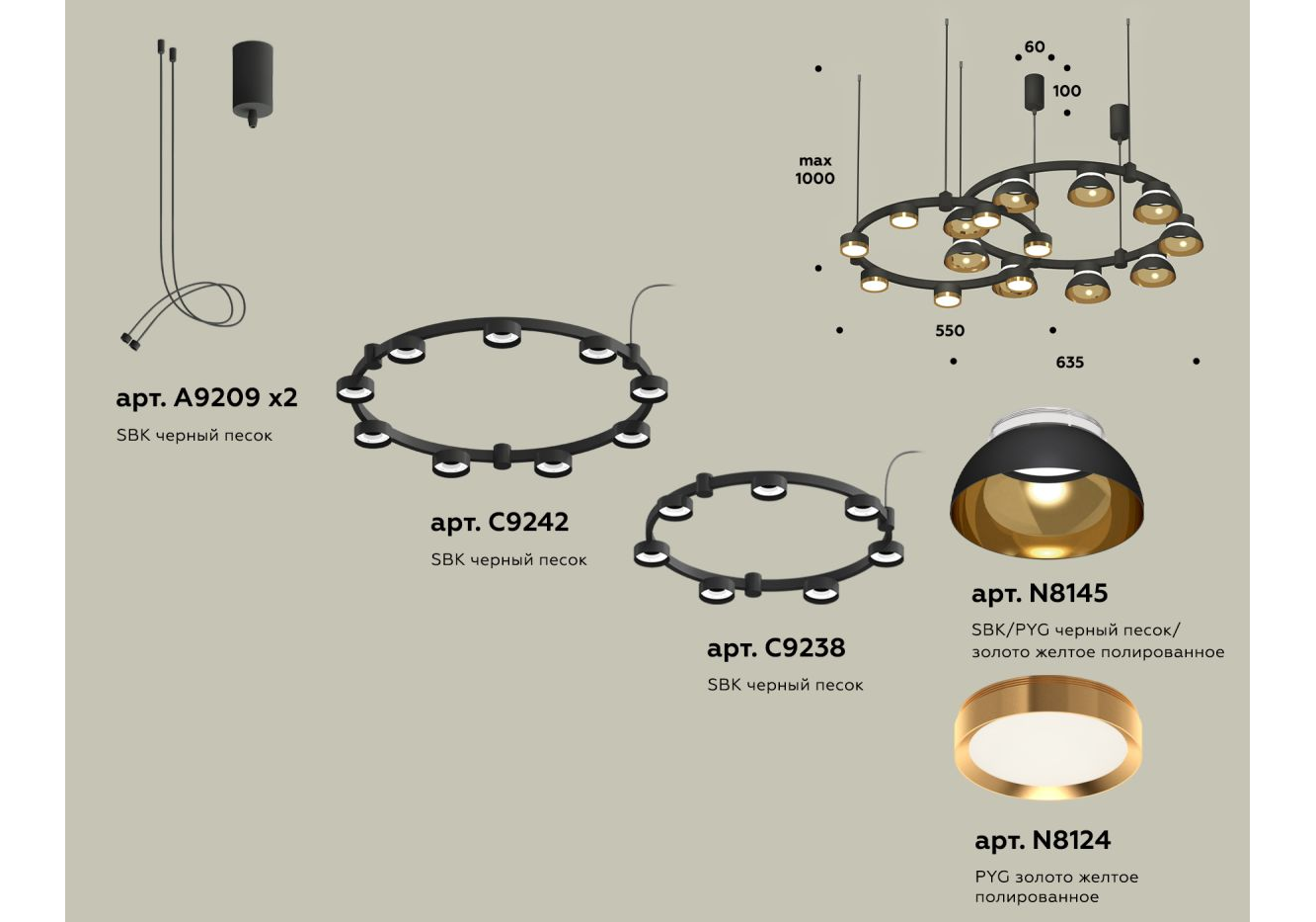 Комплект подвесного светильника Ambrella Light Techno Ring XR92091110 (A9209x2, C9238, C9242, N8145,