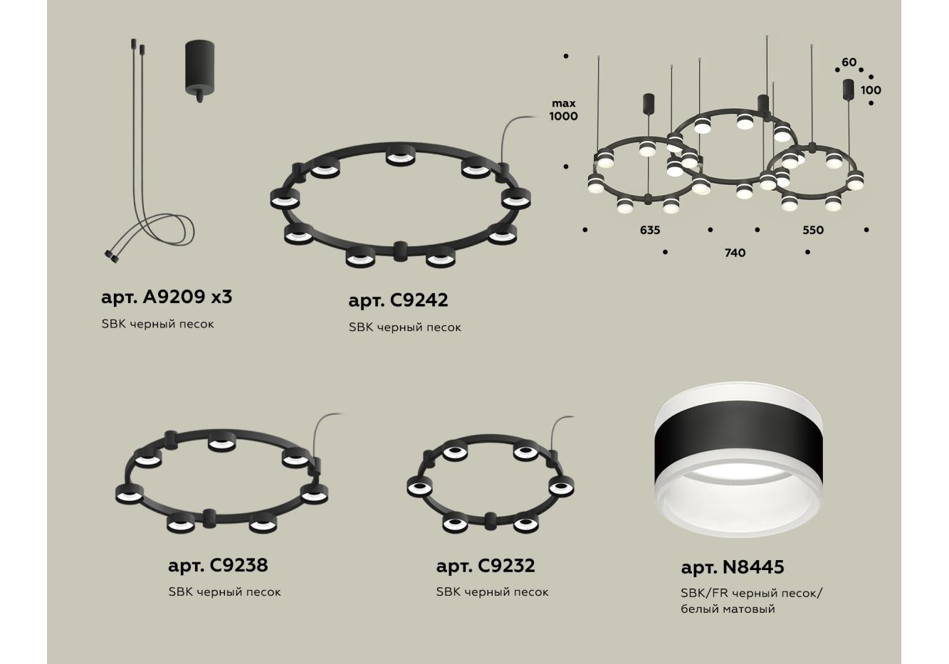 Комплект подвесного светильника Ambrella Light Techno Ring XR92092220 (A9209x3, C9242, C9238, C9232,
