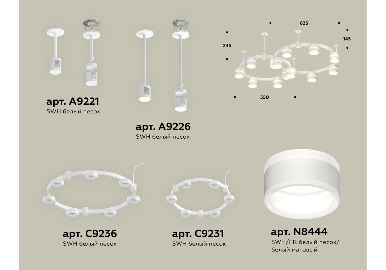 Комплект подвесного светильника Ambrella Light Techno Ring XR92211001 (A9221, A9226, C9236, C9231, N