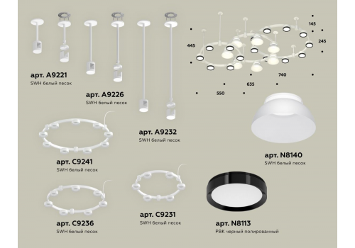Комплект подвесного светильника Ambrella Light Techno Ring XR92212010 (A9221, A9226, C9241, C9232, C