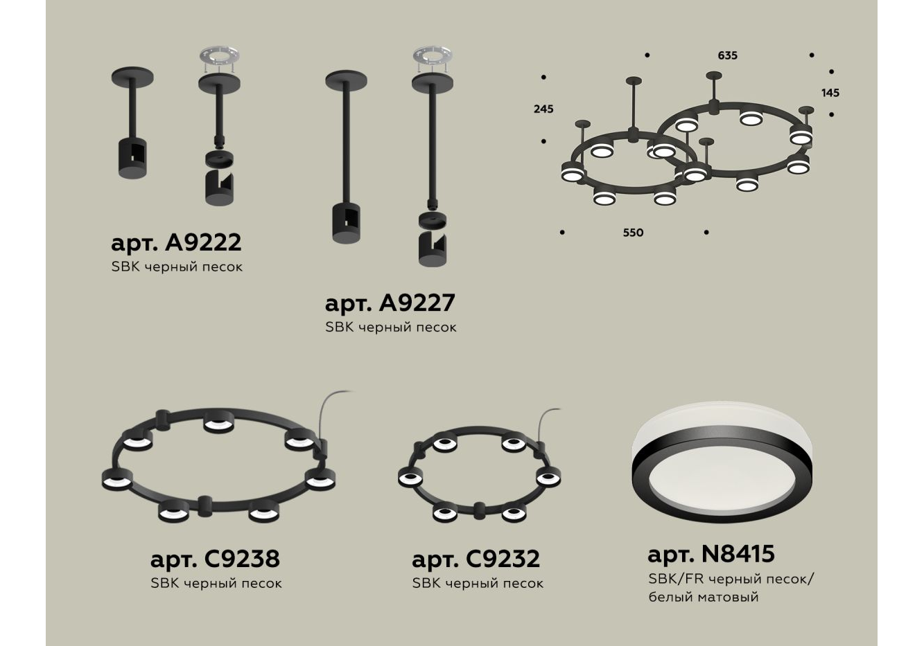 Комплект подвесного светильника Ambrella Light Techno Ring XR92221003 (A9222, A9227, C9238, C9232,