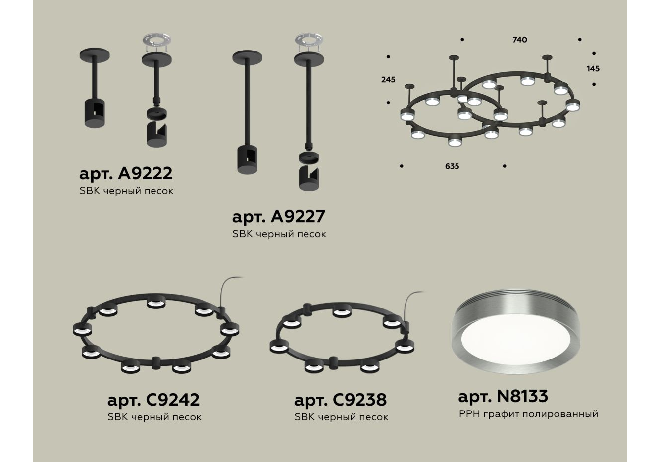 Комплект подвесного светильника Ambrella Light Techno Ring XR92221160 (A9222, A9227, C9242, C9238, N