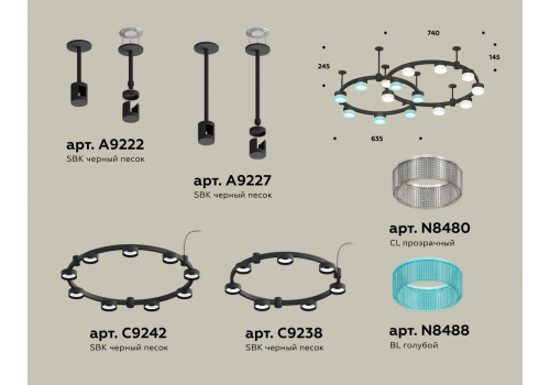 Комплект подвесного светильника Ambrella Light Techno Ring XR92221210 (A9222, A9227, C9238, C9232, N